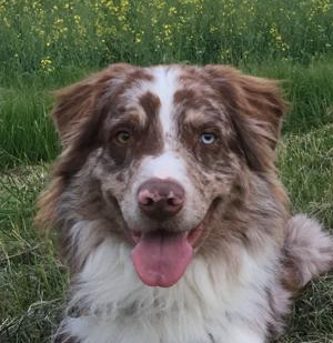 Timmy ist aufgrund seines MDR1 Gen-Defektes -/- nicht zur Zucht geeignet. Dennoch ist er ein beeindruckender Rüde in Red-Merle. Timmy ist am 09.04.2015 geboren und hat sehr ausdrucksstarke Augen in blau und amber. Timmy zeigt einen sehr großen Will-to-please, ist ein Fan von Ball und Wurfspielzeug und schwimmt sehr gerne.